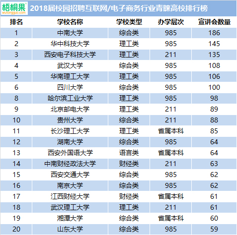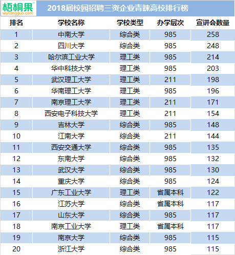“梧桐果”在发布榜单的同时,也对榜单数据进行了分析。数据分析表示,地域差异、企业分布、行业需求等因素在很大程度上影响了企业入校招聘的数量,但学校的办学实力、学生的专业能力是更吸引企业进校招揽人才的因素。