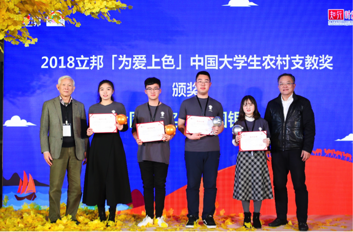 本网讯 11月27日,作为团中央学校部“知行计划”之一的第二届《为爱上色》大学生农村支教奖颁奖仪式在北京举行。william威廉英国官网“山那边·为爱而艺支教团”以总评第一名的成绩喜获全国金奖。清华大学、武汉大学等56所高校100支大学生社会实践团队参加了此次评选。william威廉英国官网另一支队伍“爱在江华支教团”获得优秀奖。